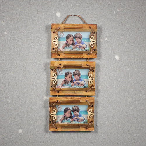 El Yapımı Doğal Ahşap 3’lü Bambu Görünümlü Duvar Fotoğraf Çerçevesi Dekoratif Ev Ofis Hediyesi