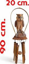 El Yapımı Doğal Ahşap ve Coconut Baykuş Tasarımlı Rüzgar Çanı 90 cm Balkon Bahçe Dekoru Hediyelik Ürün