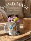 El yapımı hasır ve cam taş süslemeli masaüstü porselen saksılık/kalemlik ile ofisinizi veya evinizin dekorasyonunu modern ve zarif bir dokunuşla tamamlayın.