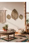 Bu küçük el yapımı yaprak formu duvar süsü, sade ve sıcak bir bohem hava katmak için ideal. İnce işçilikle örülen damar detayları ve simetrik yapı, hem modern hem de rustik dekorasyon stilleriyle uyum sağlar. Salon, antre, mutfak köşesi veya ofis duvarında küçük bir odak noktası oluşturur. Hafif yapısı sayesinde çivi veya çift taraflı bantla kolayca asılır.