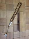 - 33 adet burma teak ağacı boncuk, 2 adet el yapımı seramik boncuk, seramik imame ve uç kısmında “Muhammed” yazılı seramik detay ile tamamlanmıştır.