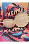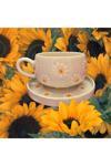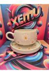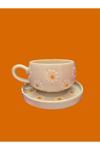 El Yapımı Turuncu Papatya İşlemeli Tabaklı Kupa