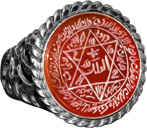 Kambo El Yapımı Yüzük, Ateş Taşı ile Gümüş Erkek Yüzüğü - Süleyman Yıldızı Amblemi, Cesaret ve Canlılık Sembolü (Ateş Taşı)