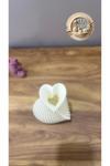 Zarif ve Şık: Kalp Desenli Dekoratif Vazo – 16 cm (Beyaz)