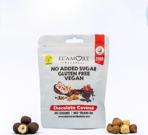 Şeker İlavesiz, Glütensiz, Vegan Fındıklı Bitter Çikolata - Doypack 50 gr