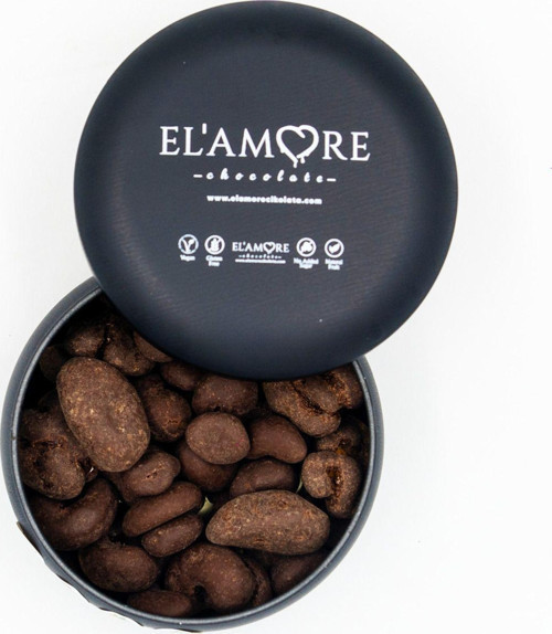Şeker İlavesiz, Glütensiz, Vegan Mix Bitter Çikolata - Siyah Yuvarlak Metal Kutu, 150 gr