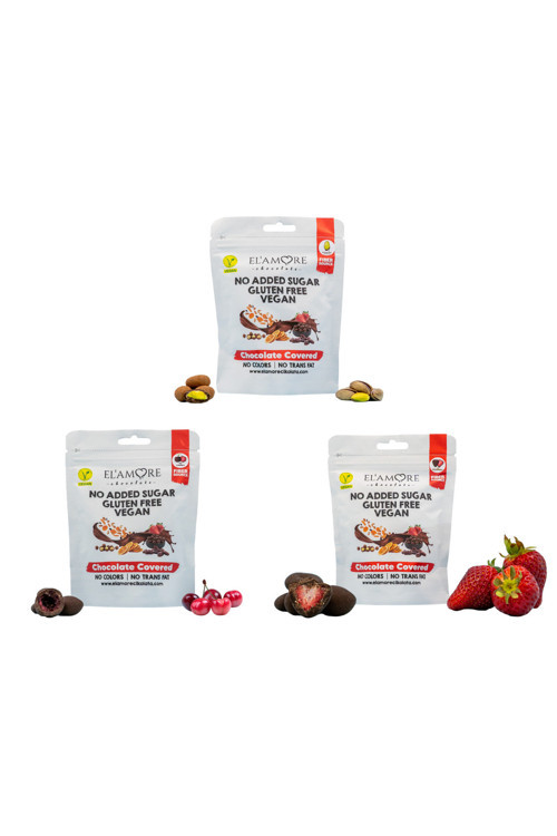 Elamore Şeker İlavesiz, Glütensiz, Vegan Pr. Antep Fıstığı, Freeze Dried Vişne Ve Çilek Bitter-50 Gr X3 Adet