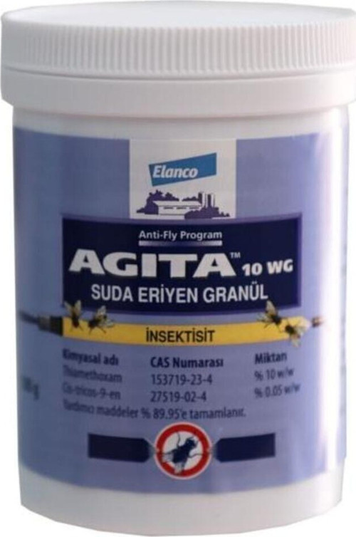 • Agita 10 WG, hayvan barınakları ve besin işletmelerinde bulunan karasineklerle mücadele etmek amacıyla geliştirilmiş olan, kullanılma aşamasında karıştırılarak uygulanmaya özgü granüllü toz halinde hazırlanmış bir üründür