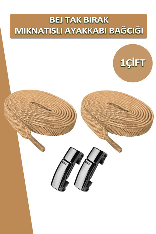 Elastik Bej Akıllı Kilitli Bağcık Mıknatıslı Metal Tak Bırak Spor Ayakkabı Bağcığı 100 Cm
