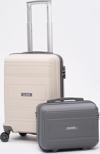 Elatae Premium Polipropilen Kırılmaz 2'li Valiz Seti Kabin Boy ve Makyaj 2'li Set Bej - Antrasit V305