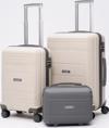 Elatae Premium Poliropilen Kırılmaz 3'lü Valiz Seti Orta - Kabin Boy ve Makyaj Bej - Antrasit V305