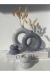 Bohem tarzıyla ev dekorasyonunuza sıcak ve doğal bir dokunuş ekleyen Sibel/ela tasarım 2'li halka vazo ve mumluk seti, mekanınıza özgün bir hava katıyor