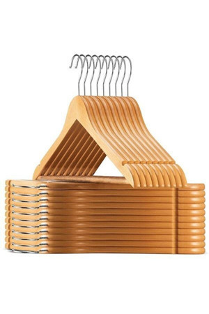 Doğal Ahşap Askı Kıyafet Ve Elbise Askısı 36 Adet Cilalı Vernikli Naturel