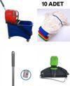 ELCY Tek Kovalı Krom Temizlik Arabası Ve Paspas Arabası Temizlik Seti Plastik -10 Adet Islak Mop