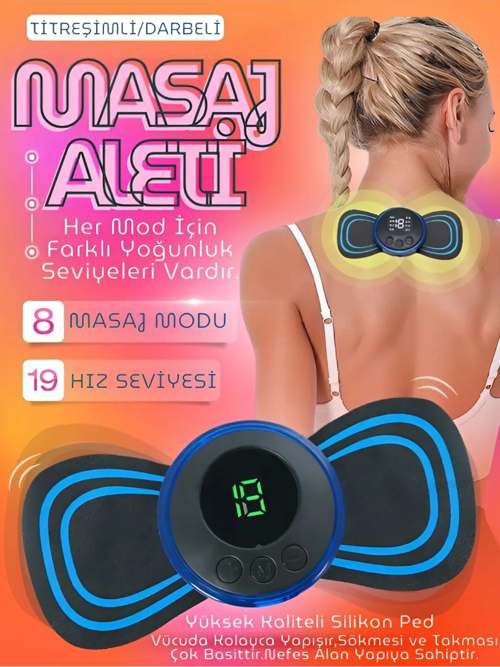 Eldenör Kelebek Masaj Aleti Bel Sırt Bacak Kol Titreşimli Masaj Pedi Şarjlı 8 Modlu Vücut Tens Cihazı