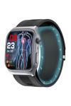 Ana Özellikler Hava pompası+hava yastığı tipi gerçek tansiyon testi, 2,06 inç AMOLED retina dokunmatik ekran, EKG nano taban, tansiyon ses yayını, BT Sesli telefon kapasitesi, TPU ultra ince konforlu hava yastığı (çıkarılabilir), EKG elektrokardiyogramı, Yapay Zeka Health AI, kan şekeri, ürik asit, kan lipidi, vücut özellikleri, kan oksijeni, uyku izleme, nefes eğitimi, NFC erişim kontrolü ve 530mAh uzun pil ömrü.