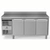 Dış ve iç kısım AISI 304 paslanmaz çeliktir. Tezgah kalınlığı 50 mm, entegre arka sıçrama koruması h=100 mm ile donatılmıştır. Yalıtım kalınlığı 90 mm. N. 3 tam kapı. Dahili soğutma ünitesi. Havalandırmalı çalışma modu. Buharlaştırıcı. Harici dijital sıcaklık göstergeli elektronik mikroişlemci kontrolü. Otomatik buz çözme. Sıcaklık aralığı: -15/-22°C. CFC ve HCFC içermez. Soğutma devresinde R290 gazı. Köpükteki gaz: Siklopentan.