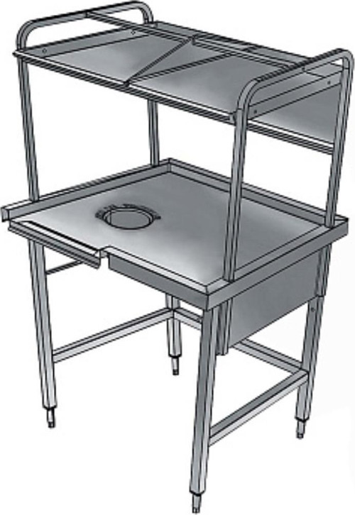 304 AISI paslanmaz çelikten üretilmiştir. Yüksekliği ayarlanabilir ayaklar üzerinde 4 adet 40x40 mm kare boru ayak. Üç tarafında alt çerçeve. Sepetler için 1 katlı üst raf. Kauçuk halkalı 1 adet atık kazıma deliği. Sağ taraftaki dolgu üstlerine veya kaydırmalı konveyörlere bağlantı. Sepet yönü: soldan sağa.