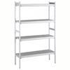 Doğrusal kurulum için. 4 katlı raf seti, panjurlu polietilen bölmeli raflar (derinlik=373 mm). Alüminyum (20 mikron) yan dikmeler (yükseklik=1700 mm). Ayarlanabilir ayaklar.
