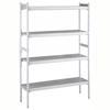 Doğrusal kurulum için. Panjurlu bölmeli polietilen raflara sahip 4 katlı raf seti (derinlik=373 mm). Alüminyum (20 mikron) yan dikmeler (yükseklik=1700 mm). Ayarlanabilir ayaklar.