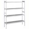 Doğrusal kurulum için. Jaluzili bölmeli polietilen raflara sahip 4 katlı raf seti (derinlik=373 mm). Alüminyum (20 mikron) yan dikmeler (yükseklik=1700 mm). Ayarlanabilir ayaklar.