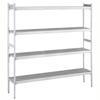 Doğrusal kurulum için. 4 katlı raf seti, panjurlu polietilen bölmeli raflar (derinlik=373 mm). Alüminyum (20 mikron) yan dikmeler (yükseklik=1700 mm). Ayarlanabilir ayaklar.