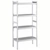 Doğrusal kurulum için. Jaluzili bölmeli polietilen raflara sahip 4 katlı raf seti (derinlik=475 mm). Alüminyum (20 mikron) yan dikmeler (yükseklik=1700 mm). Ayarlanabilir ayaklar.