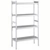 Doğrusal kurulum için. Jaluzili bölmeli polietilen raflara sahip 4 katlı raf seti (derinlik=475 mm). Alüminyum (20 mikron) yan dikmeler (yükseklik=1700 mm). Ayarlanabilir ayaklar.