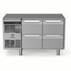 Dış ve iç kısım AISI 304 paslanmaz çeliktir. Tezgah yoktur. Yalıtım kalınlığı 90 mm. N. 4X1/2 çekmece. Dahili soğutma ünitesi. Havalandırmalı çalışma modu. Buharlaştırıcı. Harici dijital sıcaklık göstergeli elektronik mikroişlemci kontrolü. Otomatik defrost. Çalışma sıcaklığı: -2+10°C. CFC ve HCFC içermez. Soğutma devresinde R290 gazı. Köpükteki gaz: Siklopentan.