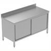 Kaynaklanmış çerçeve ve ayaklar sayesinde gelişmiş stabilite ve sağlam yapı. 304 AISI paslanmaz çelikten yapılmış, 15/10 mm kalınlığında Scotch Brite kaplamalı 50 mm yüksekliğindeki tezgah, damlamayı önleyici kenarlara ve kaynaklı köşelere sahiptir. 18 mm kalınlığındaki tezgah altı su geçirmez takviye, tamamen su geçirmez, çift taraflı lamineli ve %100 geri dönüştürülebilir. Son sınır durdurucuya sahip rulo rulmanlı, ses geçirmez çift cidarlı sürgülü kapılar (304 AISI paslanmaz çelikten yapılmış, 7/10 inç kalınlığında). Arka tarafı AISI 304 paslanmaz çelikten nokta kaynaklı profille kaplı 10 mm yarıçaplı köşeye sahip 100 mm yüksekliğindeki dikme. 40 mm ara raf (8/10 inç kalınlığında) üç farklı yükseklikte konumlandırılabilir. AISI 304 paslanmaz çelikten (8/10 inç kalınlığında) yapılmış taban paneli, yukarı kıvrık kenarları paslanmaz çelik AISI 304 çubuklarla güçlendirilmiştir. Daha fazla yapısal güçlendirme için ayaklara kaynaklanmıştır. 304 AISI paslanmaz çelikten yapılmış, yüksekliği ayarlanabilir ayaklar (-20/+30 mm).