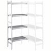Köşe montajı için. Panjurlu polietilen bölmeli raflara sahip 4 katlı raf seti (derinlik=373 mm). Alüminyum (20 mikron) yan dikmeler (yükseklik=1700 mm). Ayarlanabilir ayaklar. Lineer bir raf ünitesiyle kombine edilebilir