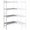 Köşe montajı için. Jaluzili bölmeli polietilen raflara sahip 4 katlı raf seti (derinlik=373 mm). Alüminyum (20 mikron) yan dikmeler (yükseklik=1700 mm). Ayarlanabilir ayaklar. Lineer raf ünitesiyle birlikte kullanılabilir
