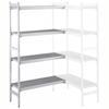 Köşe montajı için. Panjurlu polietilen bölmeli raflar içeren 4 katlı raf seti (derinlik=373 mm). Alüminyum (20 mikron) yan dikmeler (yükseklik=1700 mm). Ayarlanabilir ayaklar. Lineer bir raf ünitesiyle kombine edilebilir.
