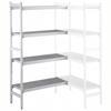 Köşe montajı için.4 katlı raf seti, panjurlu bölmeli polietilen raflar (derinlik=475 mm). Alüminyum (20 mikron) yan dikmeler (yükseklik=1700 mm). Ayarlanabilir ayaklar. Lineer bir raf ünitesiyle birlikte kullanılabilir.