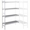 Köşe montajı için. 4 katlı raf seti, panjurlu polietilen bölmeli raflar (derinlik=475 mm). Alüminyum (20 mikron) yan dikmeler (yükseklik=1700 mm). Ayarlanabilir ayaklar. Lineer raf ünitesiyle birlikte kullanılabilir