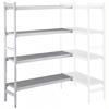 Köşe montajı için.Jaluzili bölmeli polietilen raflara sahip 4 katlı raf seti (derinlik=475 mm). Alüminyum (20 mikron) yan dikmeler (yükseklik=1700 mm). Ayarlanabilir ayaklar. Lineer bir raf ünitesiyle birlikte kullanılabilir.