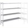 Köşe montajı için. Panjurlu polietilen bölmeli raflar içeren 4 katlı raf seti (derinlik=475 mm). Alüminyum (20 mikron) yan dikmeler (yükseklik=1700 mm). Ayarlanabilir ayaklar. Lineer bir raf ünitesiyle kombine edilebilir