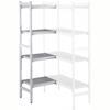 Köşe montajı için. Panjurlu bölmeli polietilen raflara sahip 4 katlı raf seti (derinlik=475 mm). Alüminyum (20 mikron) yan dikmeler (yükseklik=1700 mm). Ayarlanabilir ayaklar. Lineer bir raf ünitesiyle kombine edilebilir