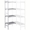 Köşe montajı için.4 katlı raf seti, panjurlu bölmeli polietilen raflar (derinlik=475 mm). Alüminyum (20 mikron) yan dikmeler (yükseklik=1700 mm). Ayarlanabilir ayaklar. Lineer bir raf ünitesiyle birlikte kullanılabilir.