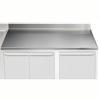 304 AISI paslanmaz çelikten yapılmış 40 mm yüksekliğindeki çalışma tezgahı, ses yalıtım malzemesinden yapılmış 18 mm'lik bir alt panele sahiptir. Ön ve arka uzunlamasına paslanmaz çelik C kanallı takviye. Su sızıntısını önlemek için çapaksız özel şekillendirilmiş ön profil. Tamamen kaynaklı ve düzgün cilalı köşeler. 45° üst açılı ve tamamen kaynaklı kenarlara sahip 100 mm kutulu ağır hizmet tipi sıçrama koruması. Çalışma tezgahları, 900 mm'lik bir çalışma yüksekliği elde etmek için braketlere, ayaklara veya tabanlara monte edilebilir.