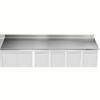 304 AISI paslanmaz çelikten yapılmış 40 mm yüksekliğindeki çalışma tezgahı, ses yalıtım malzemesinden yapılmış 18 mm'lik bir alt panele sahiptir. Ön ve arka uzunlamasına paslanmaz çelik C kanallı takviye. Su sızıntısını önlemek için çapaksız özel şekillendirilmiş ön profil. Tamamen kaynaklı ve düzgün cilalı köşeler. 45° üst açılı ve tamamen kaynaklı kenarlara sahip 100 mm kutulu ağır hizmet tipi sıçrama koruması. Çalışma tezgahları, 900 mm'lik bir çalışma yüksekliği elde etmek için braketlere, ayaklara veya tabanlara monte edilebilir.