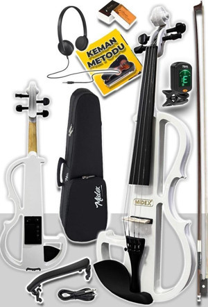 Midex RCZ-606W Elektro Keman Seti Beyaz (Kulaklık Kablo Metod Tuner Yastık )