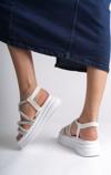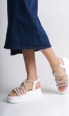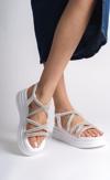 ELENA Lastikli Taşlı Şeritli Ortopedik Taban Kadın Sandalet  CBT - Beyaz