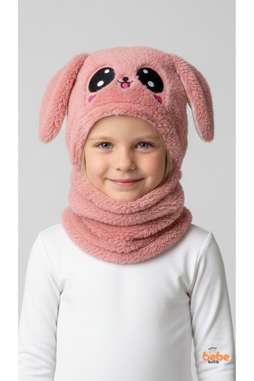kız çocuk bere boyunluk, tavşan kulaklı bere, polar bere atkı, çocuk kışlık şapka, çocuk bere atkı takımı, kız çocuk kışlık aksesuar, sevimli bere çocuk, Trend Bebe Butik