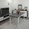 Elina Açılır Yemek Masası Antrasit/Beyaz yüksek kaliteli melamin kaplı 18 mm yonga levhadan üretilmektedir.