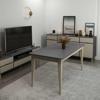 Elina Açılır Yemek Masası Antrasit/Kumtaşı yüksek kaliteli melamin kaplı 18 mm yonga levhadan üretilmektedir.