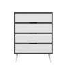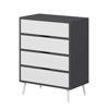 Elina Ayaklı 4 Çekmeceli Şifonyer - Antrasit/Beyaz, modern tasarımıyla hem fonksiyonel hem de estetik bir saklama çözümü sunar. Antrasitin güçlü ve sofistike duruşu ile beyazın ferah görünümü bir araya gelerek odanıza şık bir kontrast kazandırır.
