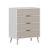 Elina Ayaklı 4 Çekmeceli Şifonyer - Beyaz/Kumtaşı, modern tasarımı ve doğal renk tonlarıyla evinize hem şıklık hem de düzen kazandırıyor. Beyazın ferahlığı ile kumtaşının sıcak ve doğal görünümü bir araya gelerek her dekorasyon tarzına uyum sağlayan estetik bir görünüm sunar.