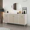 Zarif tasarımıyla dikkat çeken Elina Ayaklı Konsol Aynalı, beyaz ve kumtaşı renklerinin uyumunu modern bir çizgide sunar. 15 cm yerden yüksek ayakları sayesinde hem şık bir görünüm kazandırır hem de temizlikte kolaylık sağlar. Üst kısmındaki ayna detayı, mekâna ferahlık ve derinlik katar.