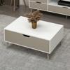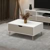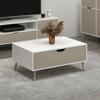 Elina Ayaklı Orta Sehpa- Beyaz/Kumtaşı, yüksek kaliteli melamin kaplı 18 mm yonga levhadan üretilmektedir.